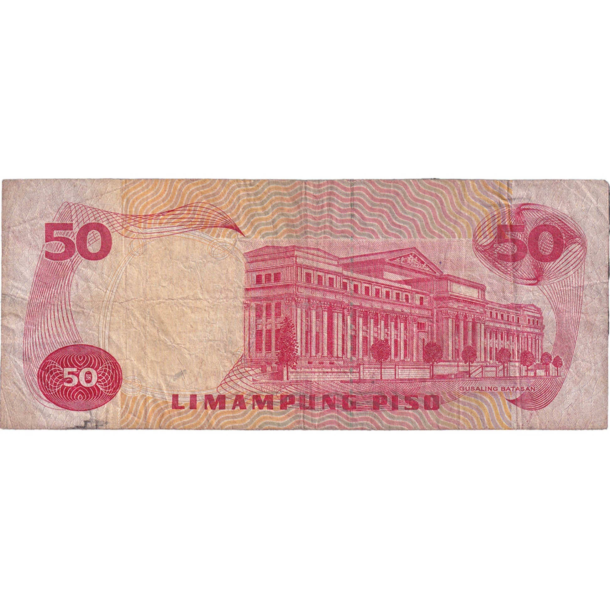 Podobne ako #146. Pečiatka pod nominálnou hodnotou, záverečný podpis, LIMAMPUNG PISO v jednom riadku a ďalšie úpravy. Horný smer v jednom obryse, vľavo a vpravo. Centrálna legislatívna budova. Červený na farebnom nápise.